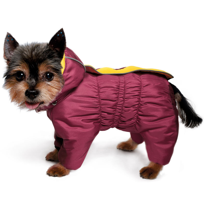 Теплый зимний комбинезон на синтепоне с капюшоном изготовлен из мягкого флиса с комбинацией современной курточной ткани Дюспо, которая эффективно отталкивает влагу, не пропускает ветер, не боится сильных морозов и ярких солнечных лучей. Комбинезон выполнен с учетом анатомических особенностей тела собаки, имеет специальные вставки из резинок, что позволяет изделию плотно сидеть на собаке, а также застегивается на молнию на спине и декорирован функциональным светоотражающим элементом.