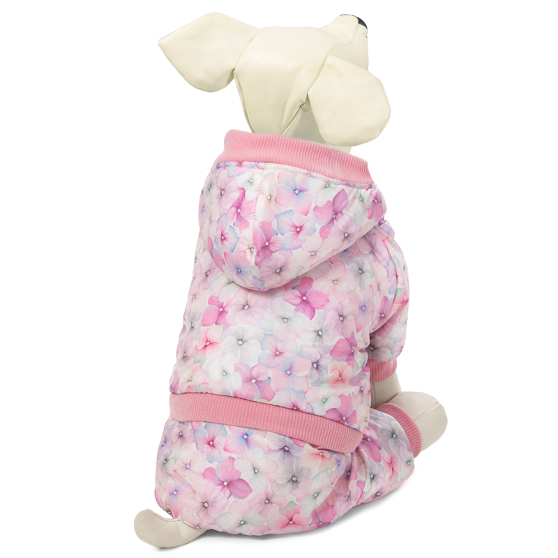 Утепленный комбинезон "Фиалка" - это практичный, стильный и по-настоящему теплый аксессуар для собак. Такая одежда защитит шерсть животного от дождя и грязи, а непродуваемая ткань - от сильного ветра и холода. Комбинезон садится "по фигуре" питомца и не стесняет его движений во время прогулки. Изделие с модным принтом и капюшоном надежно фиксируется при помощи трех заклепок на животе, а на штанинах предусмотрены удобные резинки, препятствующие попаданию грязи или налипанию снега снизу. Подкладка: футер. Длина спины: 400мм; обхват груди: 500мм; обхват шеи: 360мм. Цвет: нежно-розовый.