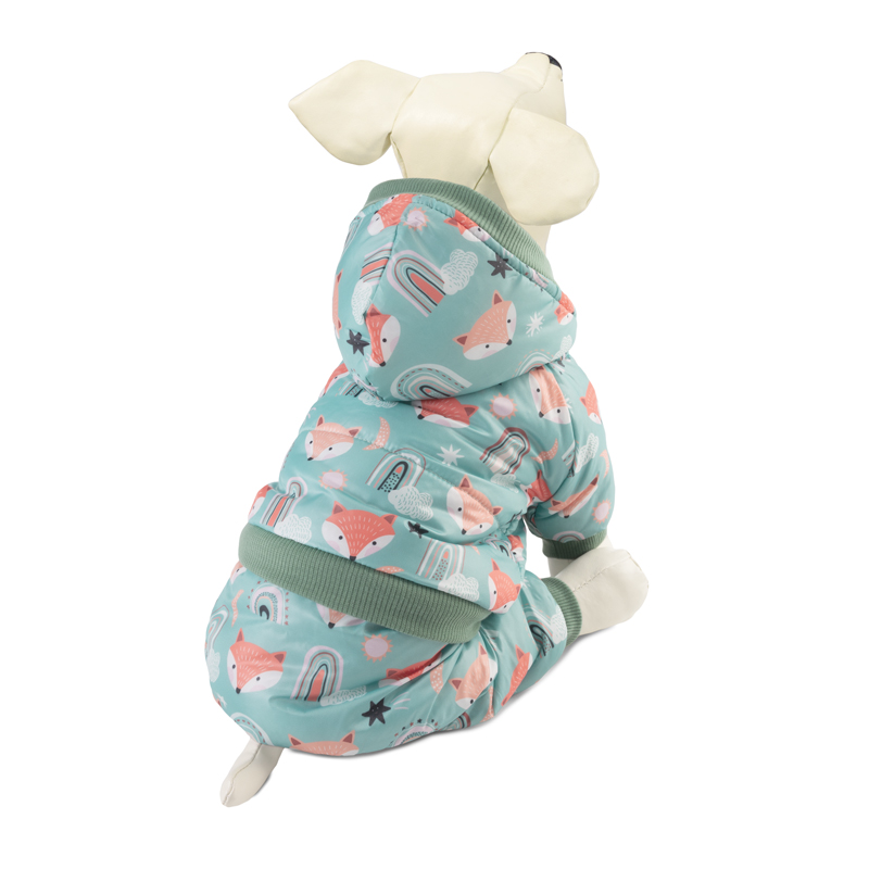 Утепленный комбинезон "Лисята" - это практичный, стильный и по-настоящему теплый аксессуар для собак. Такая одежда защитит шерсть животного от дождя и грязи, а непродуваемая ткань - от сильного ветра и холода. Комбинезон садится "по фигуре" питомца и не стесняет его движений во время прогулки. Изделие с модным принтом и капюшоном надежно фиксируется при помощи трех заклепок на животе, а на штанинах предусмотрены удобные резинки, препятствующие попаданию грязи или налипанию снега снизу. Подкладка: флис. Длина спины: 400мм; обхват груди: 500мм; обхват шеи: 360мм. Цвет: мятно-оранжевый.