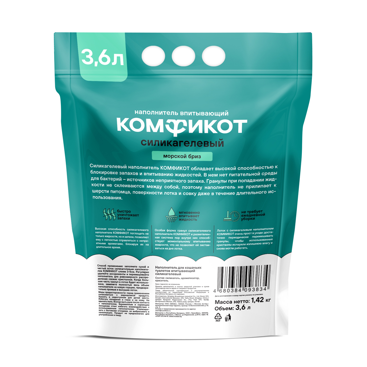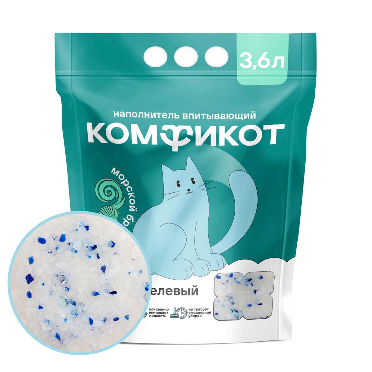 КОМФИКОТ Наполнитель силикагелевый впитывающий морской бриз, 3,6 л