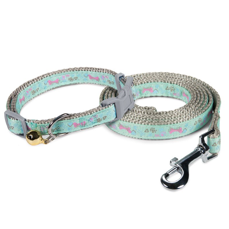 Комплект ошейник и поводок нейлоновый "Косточки" XS, 12*250-350мм; 12*1200мм, Triol