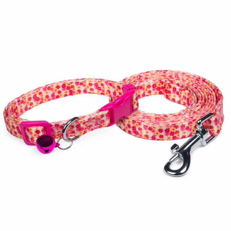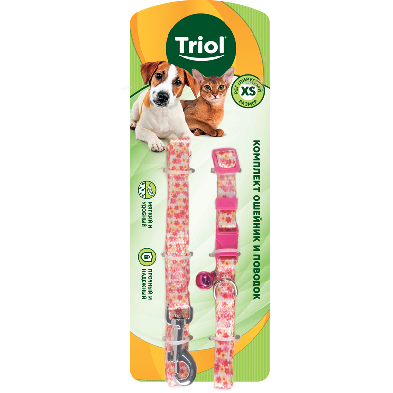 Комплект ошейник и поводок нейлоновый "Цветочки"XS, 10*200-300мм; 10*1200мм, Triol