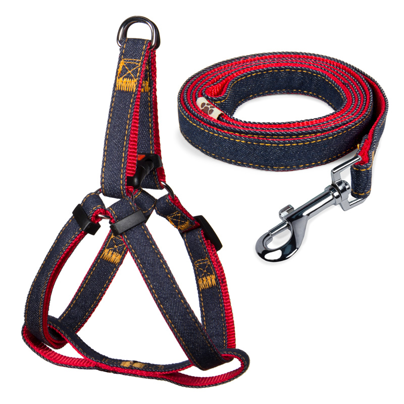 Комплект шлейка и поводок джинсовый "Ковбой" S, красный, 15*350-450мм; 15*1200мм, Triol