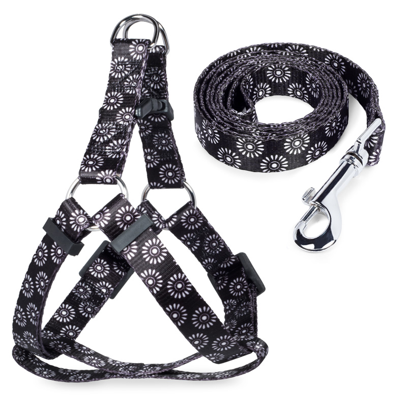 Комплект шлейка и поводок нейлоновый "Графит" M, 20*450-600мм; 20*1200мм, Triol