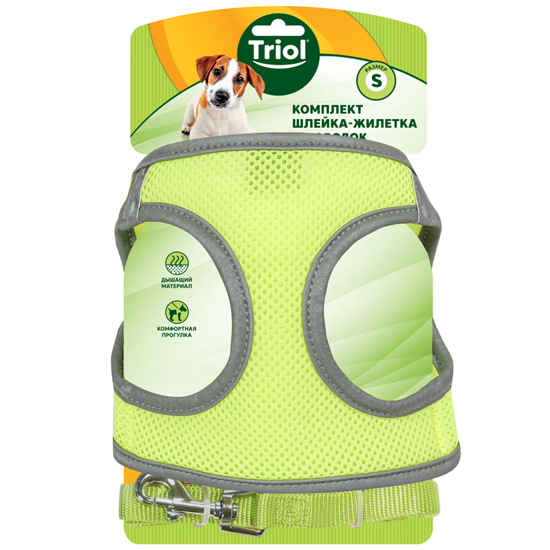 Комплект шлейка-жилетка мягкая и поводок нейлоновый неоново-желтый S, обхват груди 350мм, поводок 15*1200мм, Triol