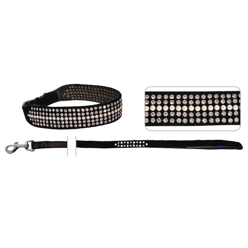 Комплект YS1238-3 ошейник и поводок из иск.кожи со стразами, 35*550мм; 20*1200мм, Triol