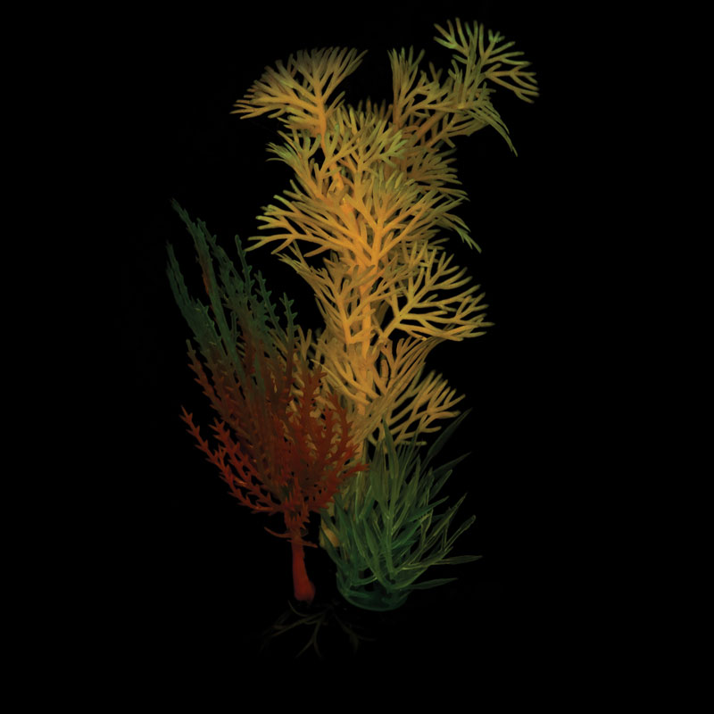 Растения - это не только завершающий штрих в оформлении, но и необходимый атрибут любого аквариума. Они придают трехмерность внутреннему пространству аквариума, а также служат дополнительным укрытием для небольших рыб, отвечая тем самым не только за эстетику, но и принося обитателям аквариума реальную пользу. Неоспоримое преимущество искусственных растений в том, что в них не заводятся паразиты и грибки, их легко мыть и дезинфицировать, и прослужат они неизмеримо дольше, чем живые растения. Изготовленное из нетоксичного пластика, светящееся растение для аквариума с тяжелой керамической подставкой подойдет для оформления любых типов пресноводных аквариумов. В состав пластика входит люминофор, который в течение светового дня накапливает энергию, а в темноте начинает ее отдавать, в результате чего от растений исходит фосфоресцирующее сияние.