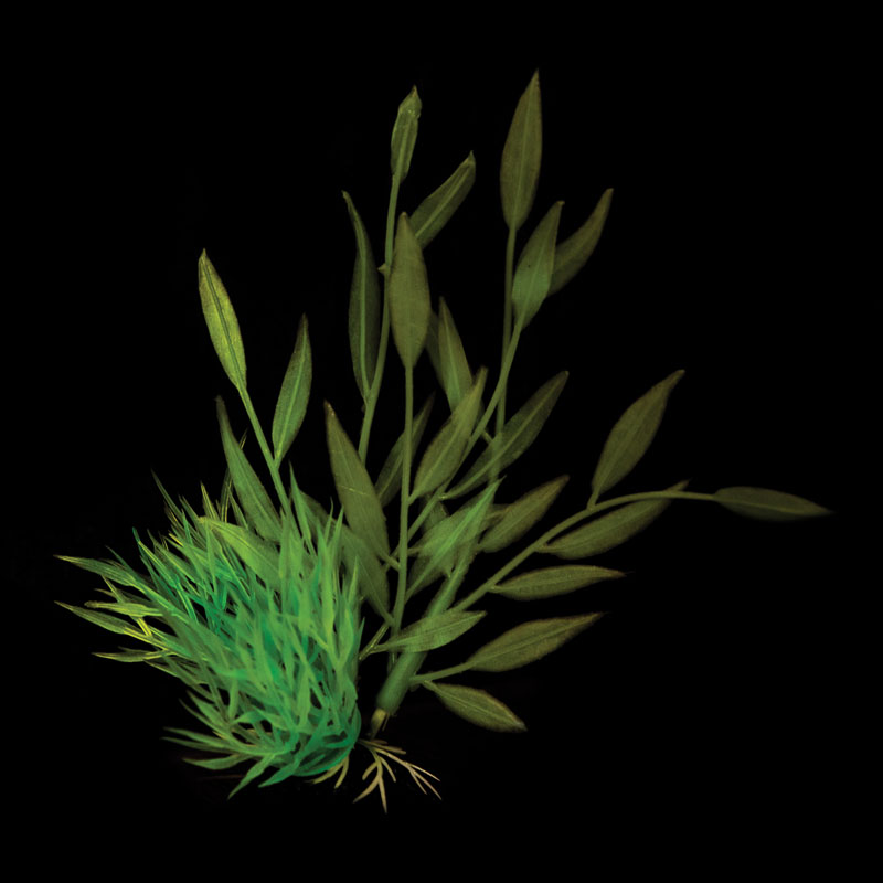 Растения - это не только завершающий штрих в оформлении, но и необходимый атрибут любого аквариума. Они придают трехмерность внутреннему пространству аквариума, а также служат дополнительным укрытием для небольших рыб, отвечая тем самым не только за эстетику, но и принося обитателям аквариума реальную пользу. Неоспоримое преимущество искусственных растений в том, что в них не заводятся паразиты и грибки, их легко мыть и дезинфицировать, и прослужат они неизмеримо дольше, чем живые растения. Изготовленное из нетоксичного силикона и керамики, искусственное растение подойдет для оформления любых пресноводных аквариумов. В состав силикона входит люминофор, который в темноте обеспечит мягкое голубоватое сияние. Оно может быть использована как самостоятельный элемент декора - для оформления небольшого аквариума, так и в комплекте с другими растениями, гротами, объемными фонами - для оформления аквариума большого объема. Благодаря составу, силиконовое растение будет вести себя под током воды из фильтрующей системы к