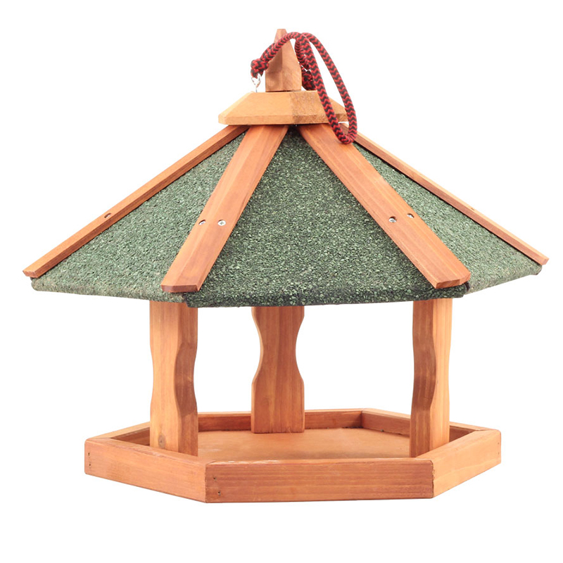 Уличная кормушка - универсальный аксессуар для кормления птиц, которую можно разместить на даче, в парке, во дворе и в любом другом месте обитания птиц. Кормушка выполнена из прочной древесины и покрыта водоотталкивающим нескользким материалом, поэтому сохраняет корм сухим и чистым. Изделие доставляется в разобранном виде, легко собирается при помощи шурупов (идут в комплекте вместе с веревкой для крепления). Размер изделия: 475х475х360мм.