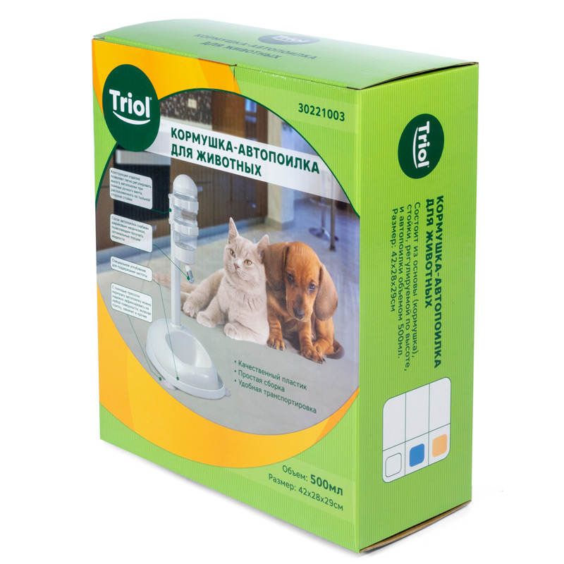 Автопоилка для животных "Аква", цвет в ассортименте, 500мл, 215*120*210мм, Triol