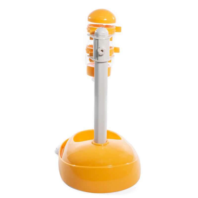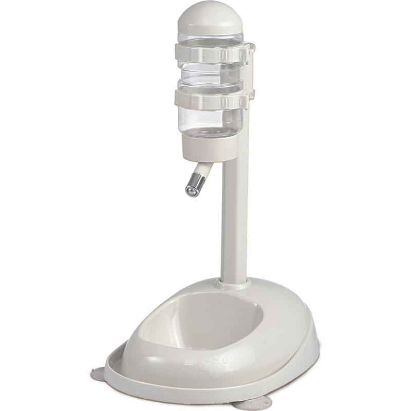 Кормушка-автопоилка - это функциональный аксессуар 2 в 1. Основание изделия служит удобной кормушкой, а в верхней его части предусмотрена удобная автопоилка объемом 400 мл. Конструкция изделия позволяет легко регулировать высоту автопоилки при помощи ручного винта, расположенного на тыльной стороне стойки. При этом носик изделия снабжен шариковым механизмом, позволяющим получать оптимальные порции жидкости. Основа кормушки имеет устойчивую платформу и не скользит благодаря 2-м силиконовым ножкам-присоскам. Кроме того, изделие имеет дополнительный борт, препятствующий разбрасыванию корма в процессе еды. Все элементы кормушки выполнены из качественного пластика и легко разбираются на составные части, что очень удобно при транспортировке изделия. Цвет: белый. Размер изделия: 290х222х400мм.
