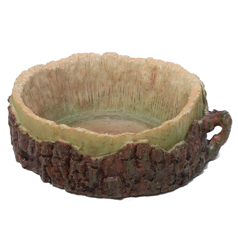 Глубокая и тяжелая кормушка-поилка для рептилий из полиэфирной смолы. Имитация природного камня. Можно использовать в любых террариумах.