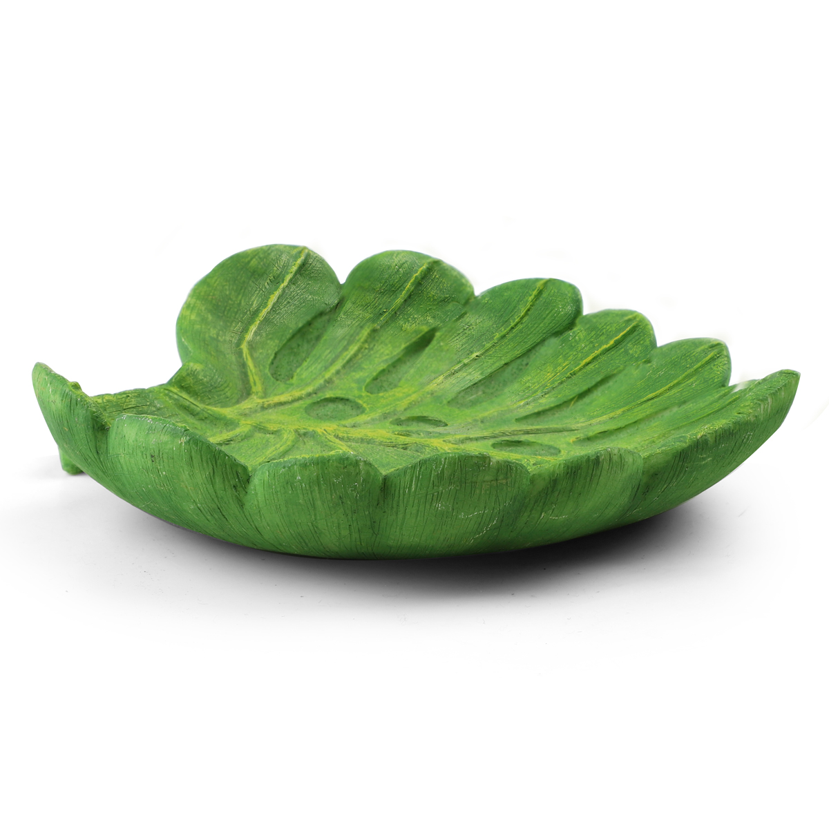 Устойчивая кормушка из пищевой нетоксичной полиэфирной смолы с толстым тяжелым дном, имитация листа тропического растения.