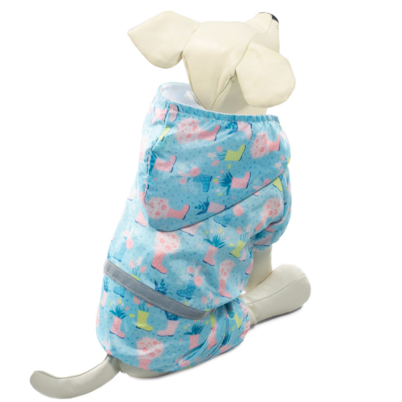 Костюм-дождевик "Букет" - это удобный и функциональный аксессуар для собак, который просто незаменим в дождливую погоду. Изделие защитит шерсть животного от дождя и грязи, а непродуваемая ткань - от сильного ветра. Костюм имеет стильный дизайн, а универсальный фасон не стесняет движений питомца во время прогулки. Особенностью дождевика является светоотражающая лента, идущая по талии изделия, - для повышения безопасности животного на дороге. Дождевик также имеет капюшон и фиксируется при помощи трех заклепок на животе, а на штанинах предусмотрены удобные резинки, препятствующие попаданию грязи и влаги снизу. Длина спины: 400мм; обхват груди: 500мм; обхват шеи: 360мм. Цвет: голубой.