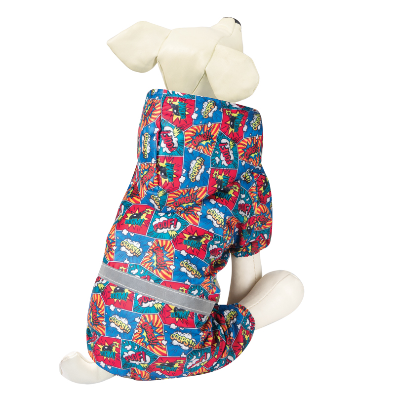 Костюм-дождевик "Феерия" - это удобный и функциональный аксессуар для собак, который просто незаменим в дождливую погоду. Изделие защитит шерсть животного от дождя и грязи, а непродуваемая ткань - от сильного ветра. Костюм имеет стильный дизайн, а универсальный фасон не стесняет движений питомца во время прогулки. Особенностью дождевика является светоотражающая лента, идущая по талии изделия, - для повышения безопасности животного на дороге. Дождевик также имеет капюшон и фиксируется при помощи трех заклепок на животе, а на штанинах предусмотрены удобные резинки, препятствующие попаданию грязи и влаги снизу. Длина спины: 250мм; обхват груди: 380мм; обхват шеи: 270мм. Цвет: сине-красный.
