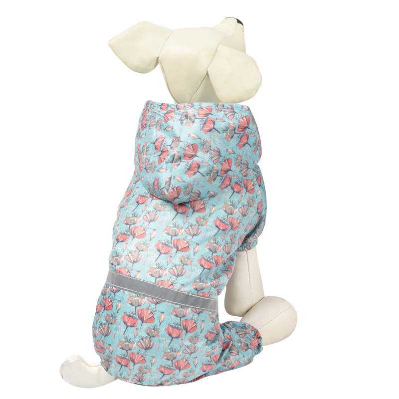 Костюм-дождевик "Маковое поле" - это удобный и функциональный аксессуар для собак, который просто незаменим в дождливую погоду. Изделие защитит шерсть животного от дождя и грязи, а непродуваемая ткань - от сильного ветра. Костюм имеет стильный дизайн, а универсальный фасон не стесняет движений питомца во время прогулки. Особенностью дождевика является светоотражающая лента, идущая по талии изделия, - для повышения безопасности животного на дороге. Дождевик также имеет капюшон и фиксируется при помощи трех заклепок на животе, а на штанинах предусмотрены удобные резинки, препятствующие попаданию грязи и влаги снизу. Длина спины: 300мм; обхват груди: 420мм; обхват шеи: 300мм. Цвет: светло-бирюзовый с оранжевым.