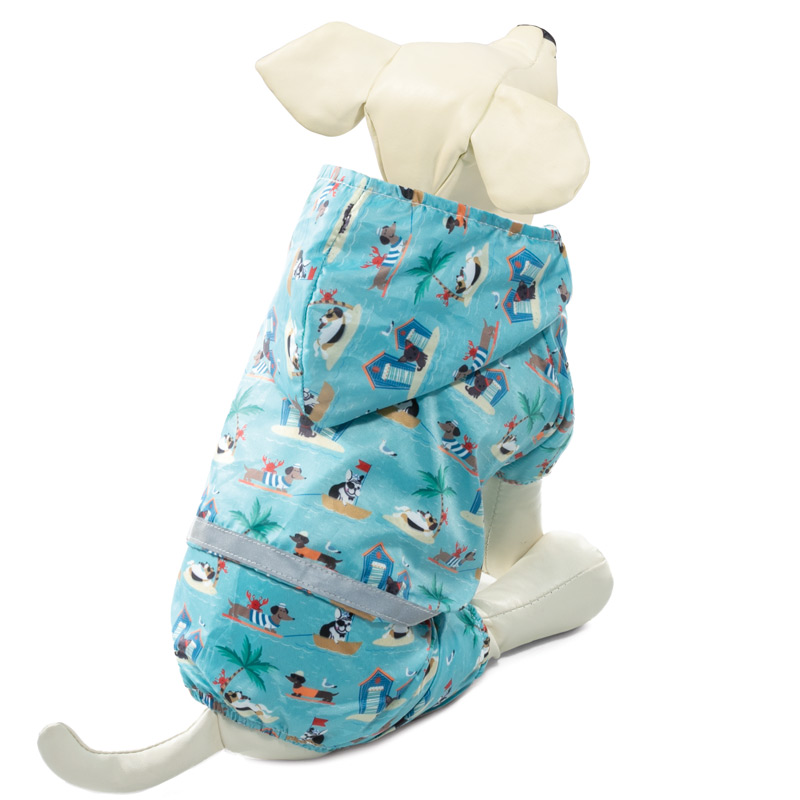 Костюм-дождевик "Мореплаватели" - это удобный и функциональный аксессуар для собак, который просто незаменим в дождливую погоду. Изделие защитит шерсть животного от дождя и грязи, а непродуваемая ткань - от сильного ветра. Костюм имеет стильный дизайн, а универсальный фасон не стесняет движений питомца во время прогулки. Особенностью дождевика является светоотражающая лента, идущая по талии изделия, - для повышения безопасности животного на дороге. Дождевик также имеет капюшон и фиксируется при помощи трех заклепок на животе, а на штанинах предусмотрены удобные резинки, препятствующие попаданию грязи и влаги снизу. Длина спины: 400мм; обхват груди: 500мм; обхват шеи: 360мм. Цвет: бирюзовый.