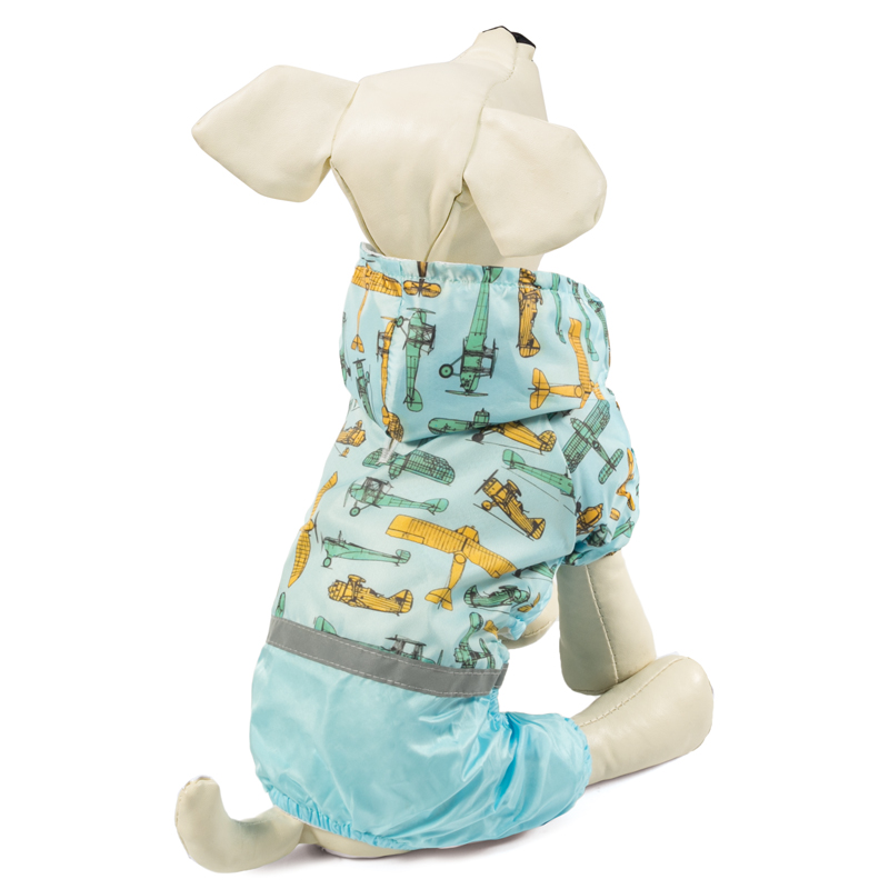 Костюм-дождевик "Самолеты" - это удобный и функциональный аксессуар для собак, который просто незаменим в дождливую погоду. Изделие защитит шерсть животного от дождя и грязи, а непродуваемая ткань - от сильного ветра. Костюм имеет стильный дизайн, а универсальный фасон не стесняет движений питомца во время прогулки. Особенностью дождевика является светоотражающая лента, идущая по талии изделия, - для повышения безопасности животного на дороге. Дождевик также имеет капюшон и фиксируется при помощи трех заклепок на животе, а на штанинах предусмотрены удобные резинки, препятствующие попаданию грязи и влаги снизу. Длина по спинке: 400мм; обхват груди: 500мм; обхват шеи: 360мм. Цвет: голубой.