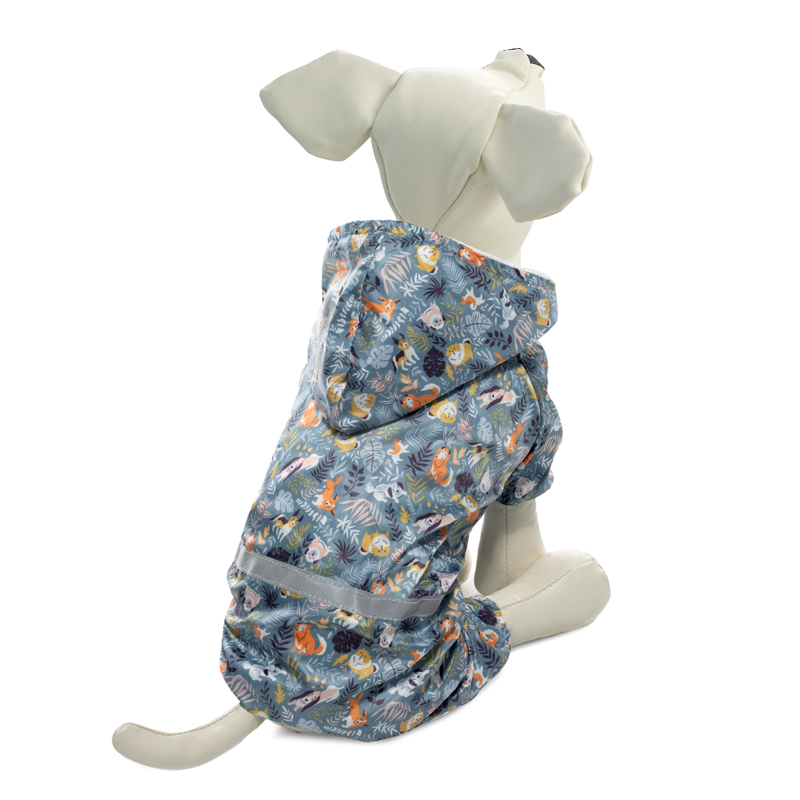 Костюм-дождевик "Зверята" - это удобный и функциональный аксессуар для собак, который просто незаменим в дождливую погоду. Изделие защитит шерсть животного от дождя и грязи, а непродуваемая ткань - от сильного ветра. Костюм имеет стильный дизайн, а универсальный фасон не стесняет движений питомца во время прогулки. Особенностью дождевика является светоотражающая лента, идущая по талии изделия, - для повышения безопасности животного на дороге. Дождевик также имеет капюшон и фиксируется при помощи трех заклепок на животе, а на штанинах предусмотрены удобные резинки, препятствующие попаданию грязи и влаги снизу. Длина по спинке: 200мм; обхват груди: 340мм; обхват шеи: 240мм. Цвет: аквамариновый.