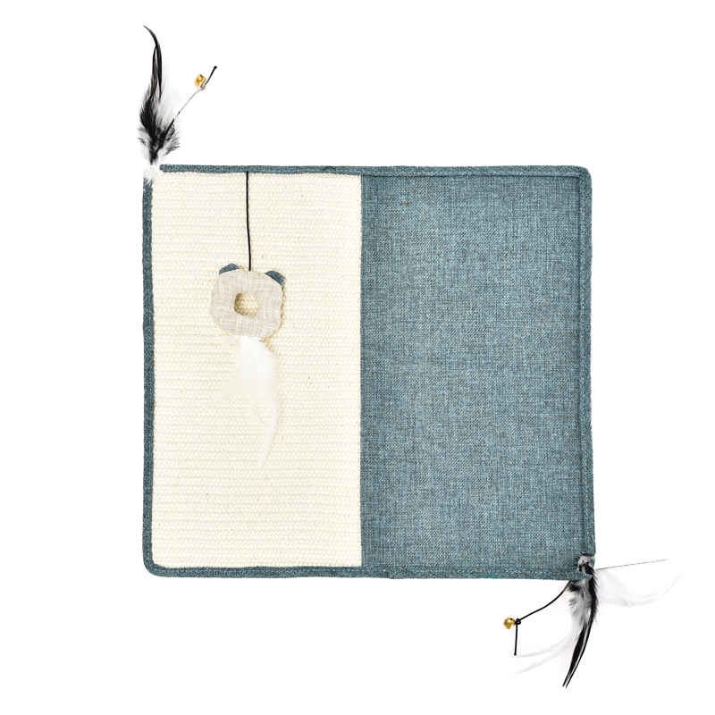 Когтеточки - обязательный аксессуар для личной гигиены кошек, который помогает животным избавиться от шелушащихся слоев когтя, причиняющих дискомфорт подушечкам лап. По своей природе сизаль обладает уникальным антистатичным свойством, следовательно, когтеточка не накапливает пыль, что облегчает процесс уборки. Игрушка с перышком на резинке и перышки с бубенчиками с двух краев коврика - дополнительные аксессуары для игры и привлечения внимания кошки к когтеточке. По своей природе сизаль обладает уникальным антистатичным свойством, следовательно, когтеточка не накапливает пыль, что облегчает процесс уборки. Цвет: бело-серый. Размер: 400*400*10мм