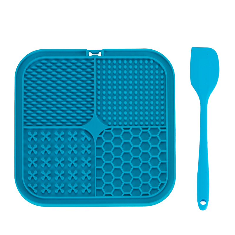 Коврик лизательный для животных силиконовый с лопаткой "Гурман", голубой, 200*200*9мм, Triol