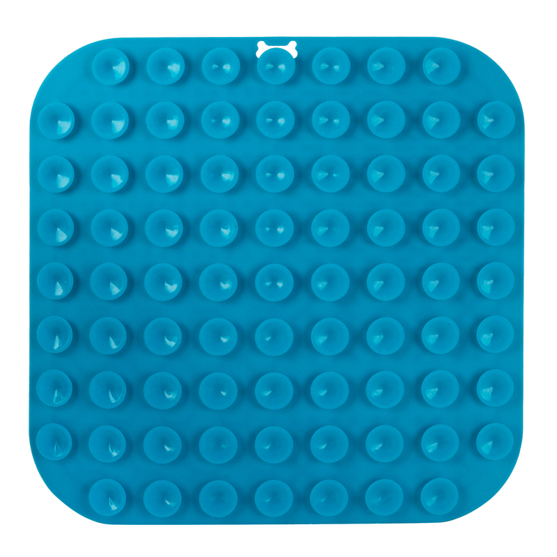 Лизательный коврик выполнен из безопасного пищевого силикона, который легко промывается в воде после окончания приема пищи. Удобные присоски на оборотной стороне коврика предотвращают скольжение по полу, а также служат удобным креплением для ванны в груминг салоне или стола в ветеринарной клинике.