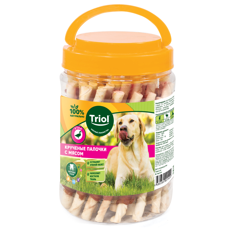 Крученые палочки с уткой для собак, 340г (банка), Triol