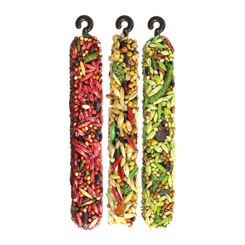 Лакомство для грызунов АССОРТИ (с фруктами, с овощами, с мёдом и хитином): три палочки разных лакомств запаяны в полиэтиленовый пакет и уложены в картонную коробочку.