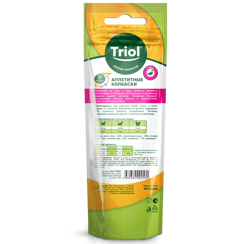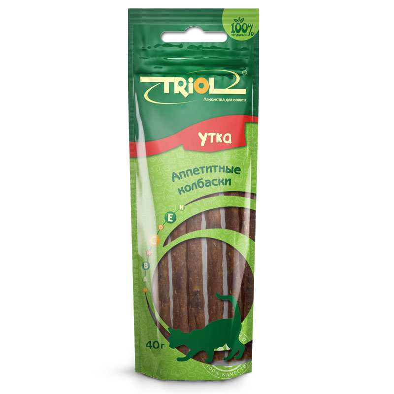 Лакомство для кошек «Аппетитные колбаски из утки», 40г, Triol