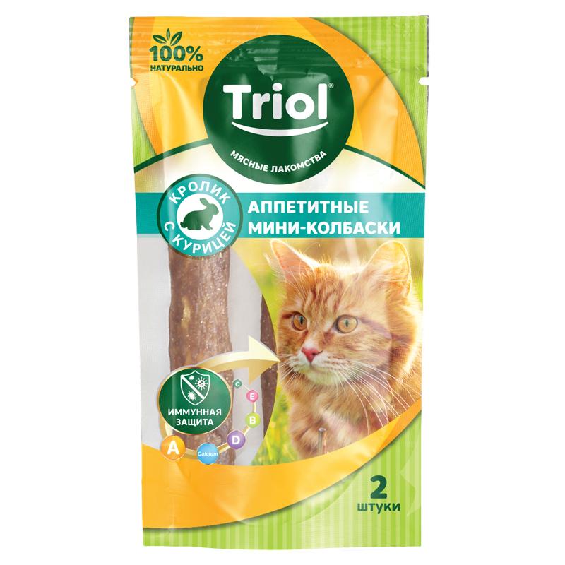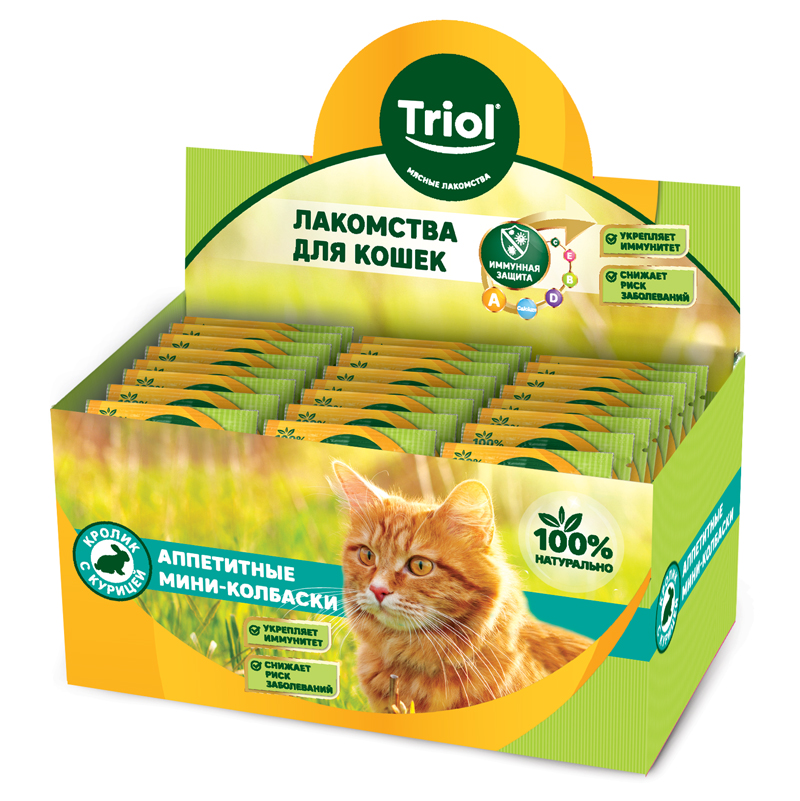 Лакомство для кошек «Аппетитные мини-колбаски из кролика с курицей», 7г (уп.2шт./шоу-бокс 60уп.), Triol