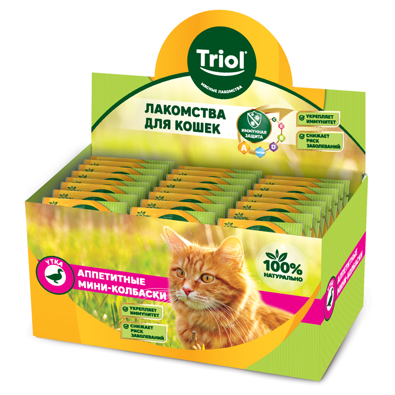 Лакомство для кошек «Аппетитные мини-колбаски из утки», 7г (уп.2шт./шоу-бокс 60уп.), Triol