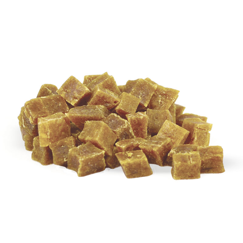 Лакомые кусочки из курицы - это полезное угощение для здоровья вашего питомца, обогащенное общеукрепляющим комплексом витаминов А, Е и D3. Вес нетто 40г.