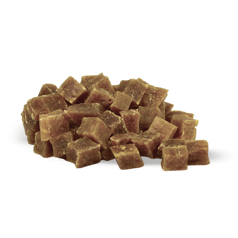 Состав: мясо утки - 79%, кукурузный крахмал - 8.5%, арахисовый белок - 4.7%, сорбитол - 4%, глицерин - 3.5%, соль - 0,2%, сорбат калия - 0,1%.