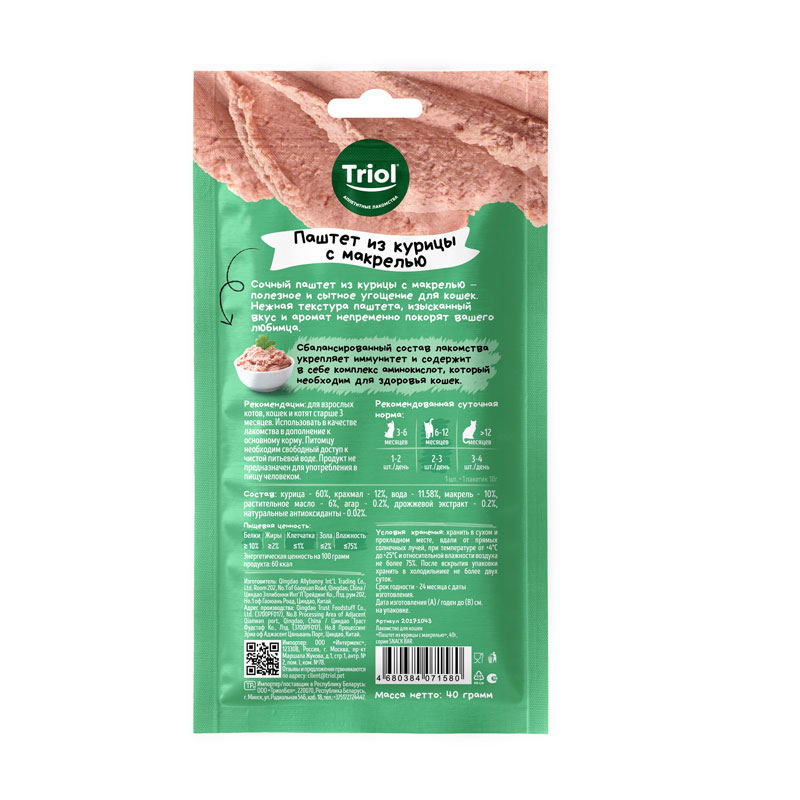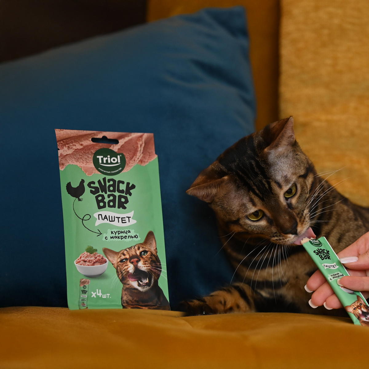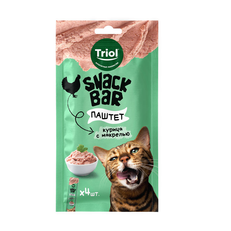 Лакомство для кошек "Паштет из курицы с макрелью", 40г, серия SNACK BAR, Triol