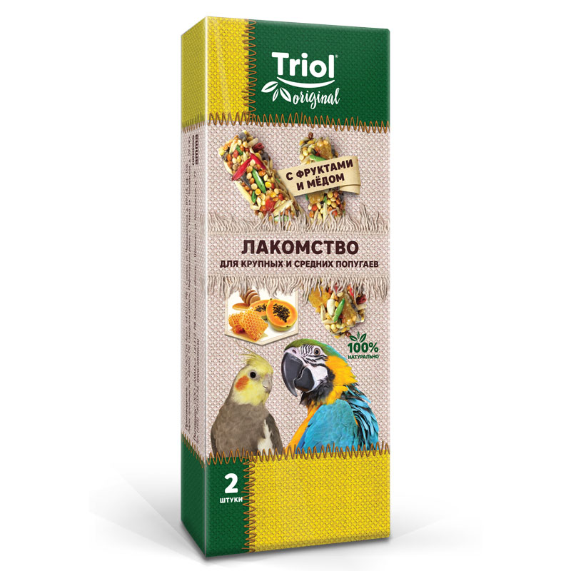 Лакомство для крупных и средних попугаев с фруктами и мёдом (уп.2шт.), 55г, Triol Original