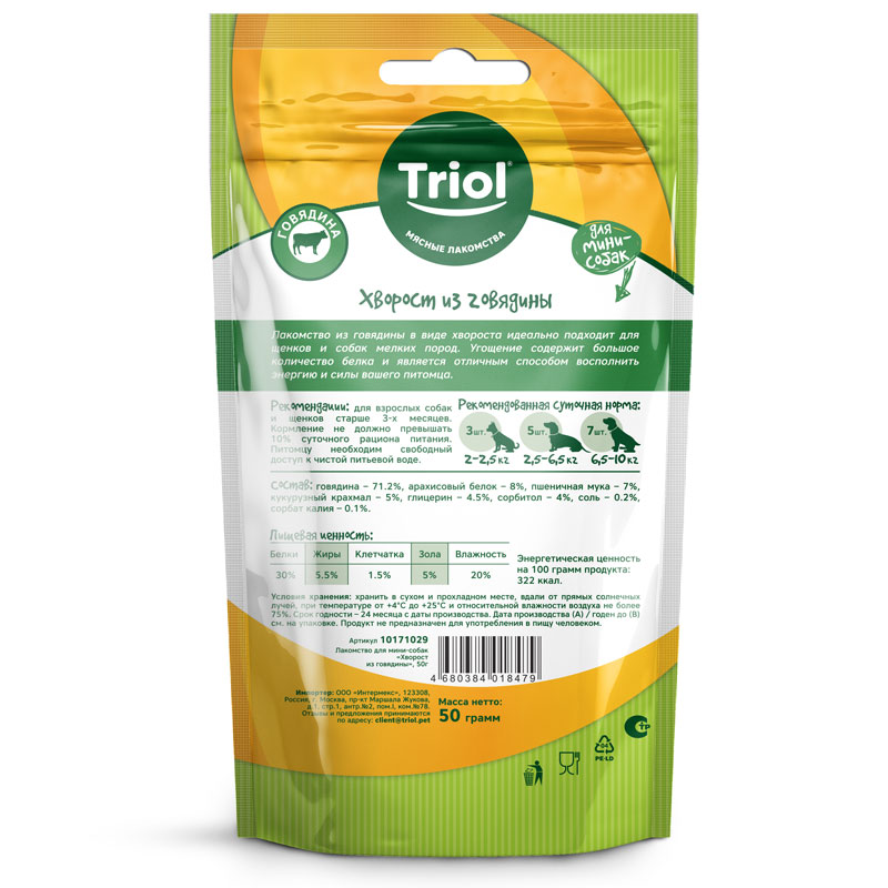 Лакомство для мини-собак «Хворост из говядины», 50г, Triol