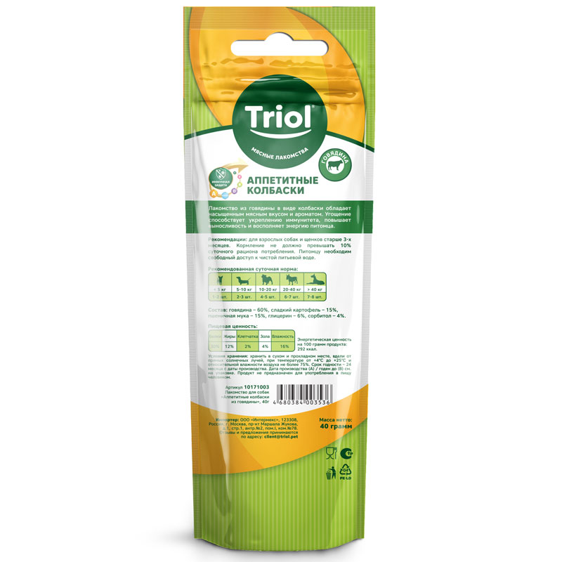 Лакомство для собак «Аппетитные колбаски из говядины», 40г, Triol