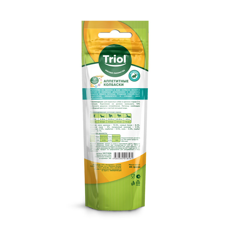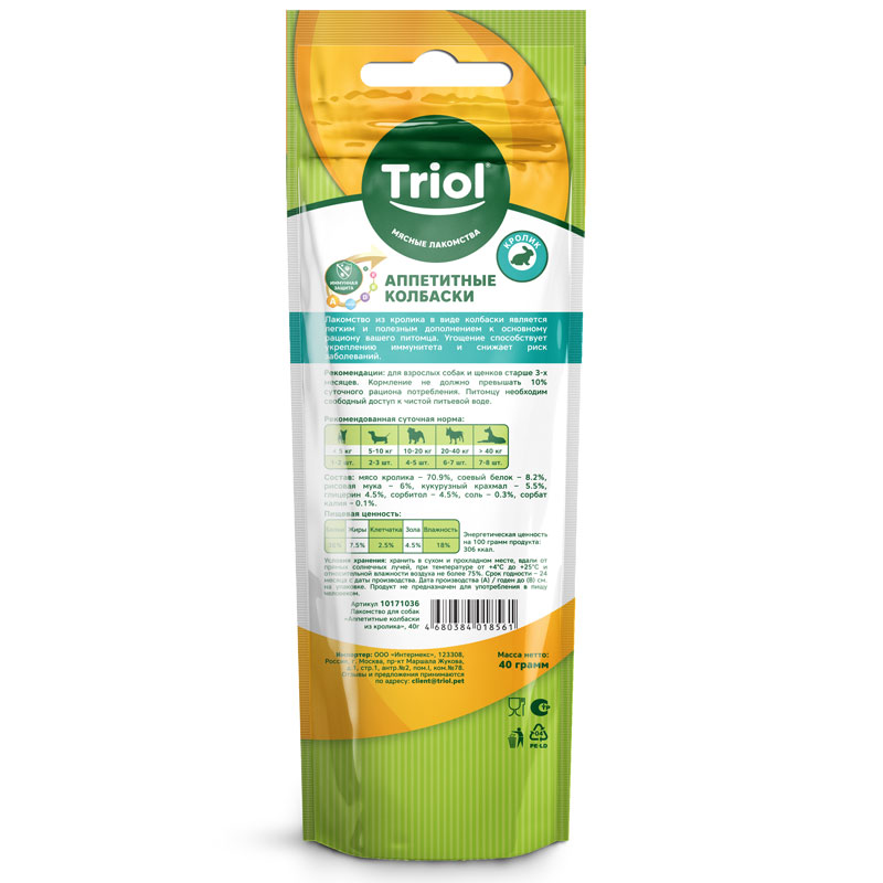 Лакомство для собак «Аппетитные колбаски из кролика», 40г, Triol