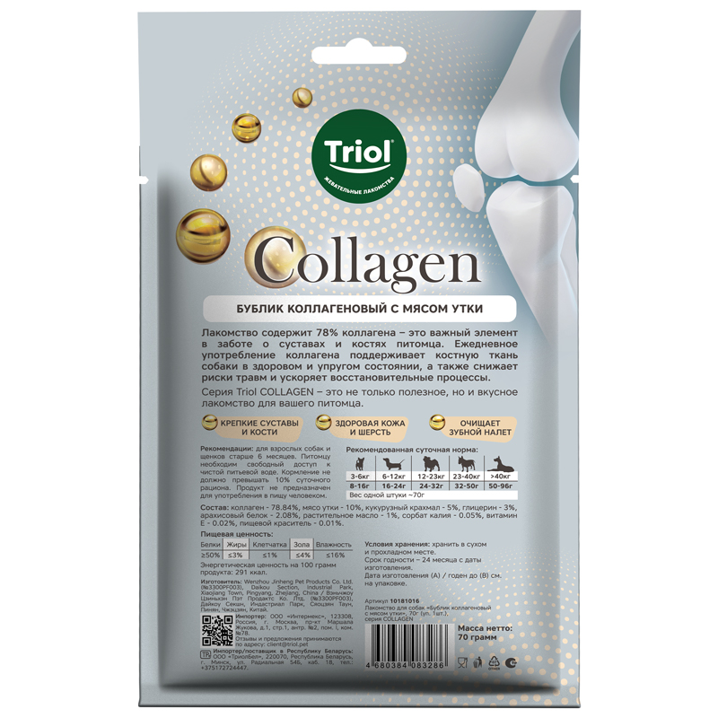 Серия Triol COLLAGEN – это не только полезное, но и вкусное лакомство для вашего питомца. Цвет: светло-коричневый. Вес нетто: 70г.
