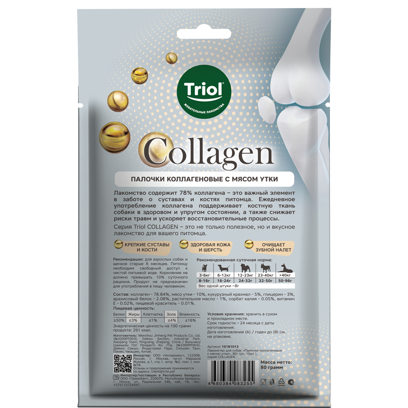 Серия Triol COLLAGEN – это не только полезное, но и вкусное лакомство для вашего питомца. Цвет: светло-коричневый. Вес нетто: 80г.