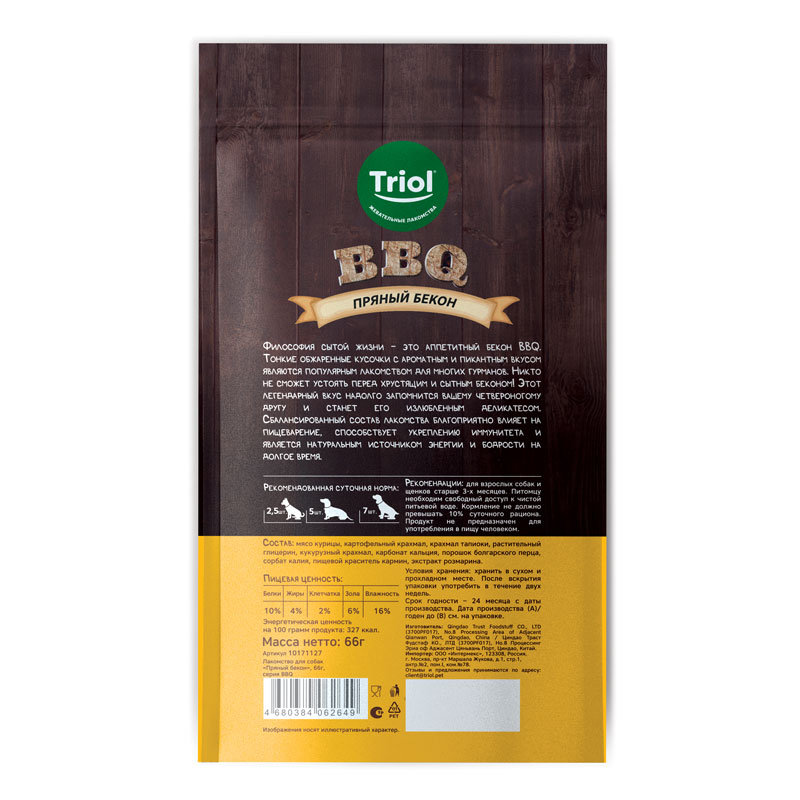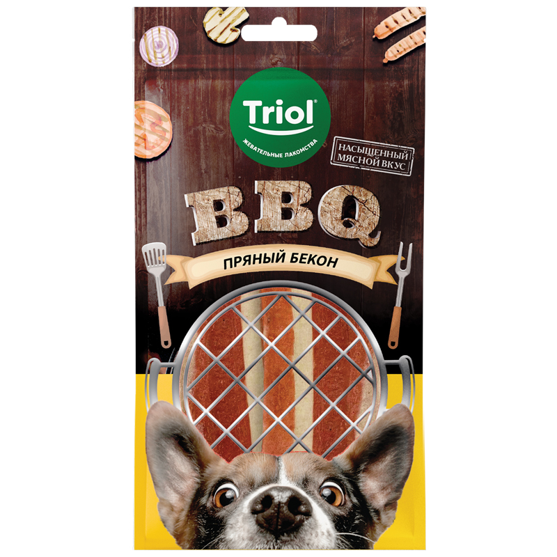Лакомство для собак "Пряный бекон", 66г, серия BBQ, Triol