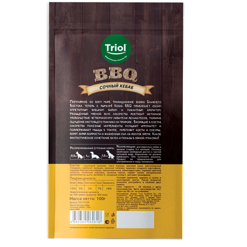Лакомство для собак "Сочный кебаб" 100г, серия BBQ, Triol