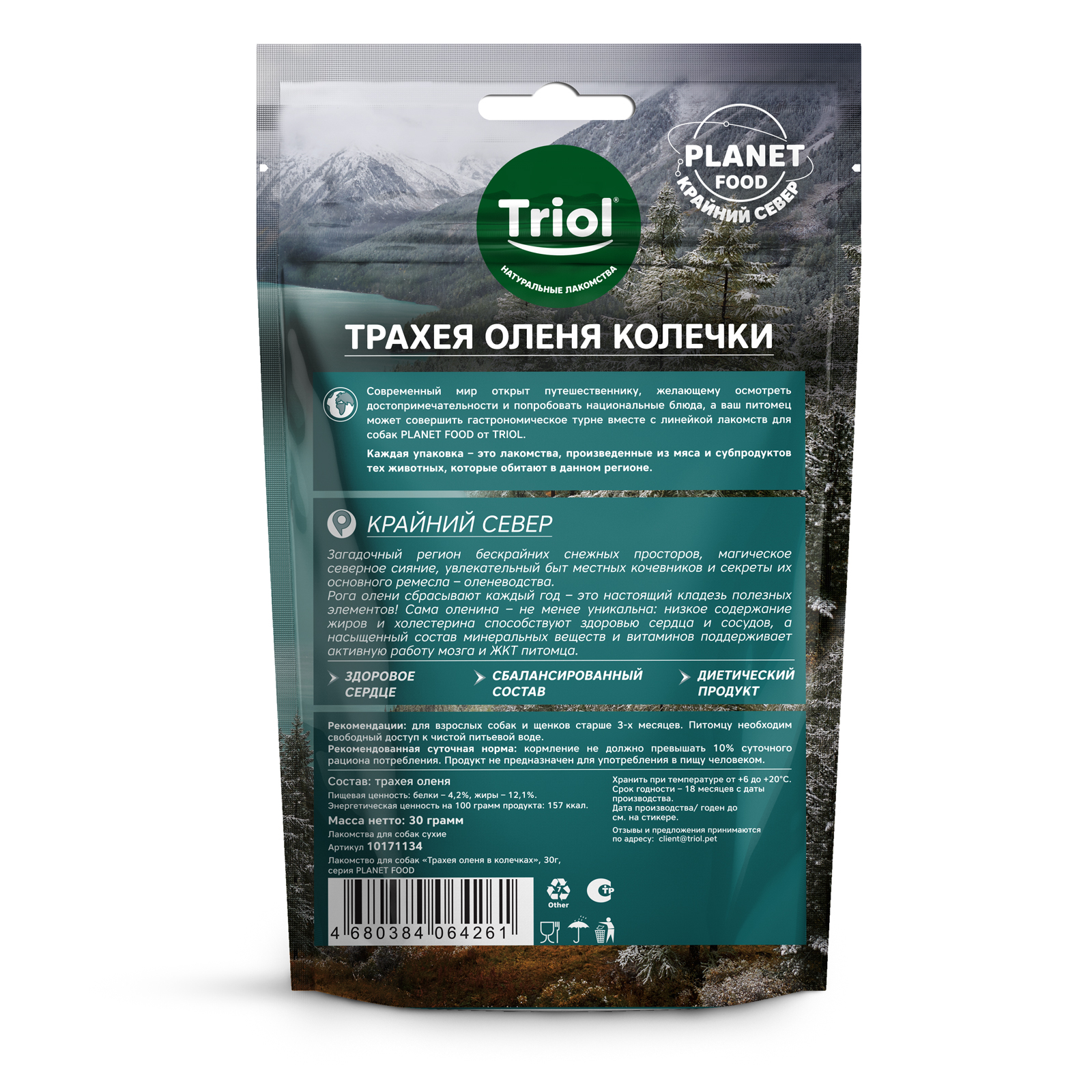 Лакомство для собак "Трахея оленя в колечках", 30г, серия PLANET FOOD, Triol