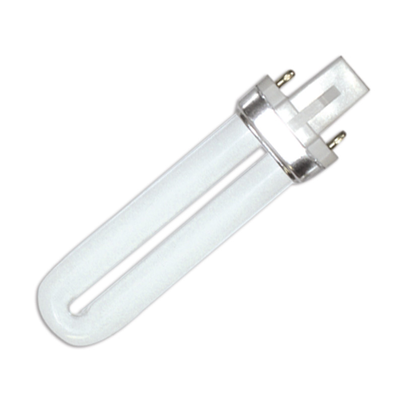 Компактная бактерицидная лампа низкого давления PL с цоколем G23 для ультрафиолетовых стерилизаторов JEBO. Лампа имеет мощный антибактериальный эффект за счет коротковолнового ультрафиолетового излучения, длина волны составляет 254 НМ, что является губительным для болезнетворных бактерий и микроорганизмов. Эффективный срок службы 5000 часов. Диаметр трубки 12 мм, длина между штырьками контактов 23 мм, длина лампы 313 мм.