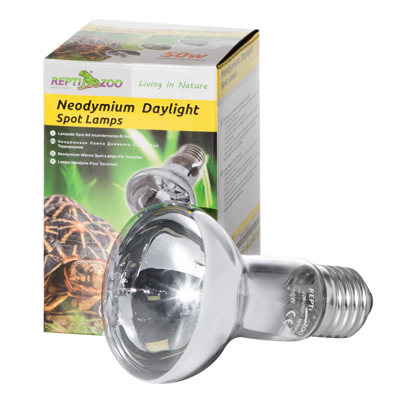 Дневные лампы служат для освещения и обогрева террариумов. Содержат в спектре УФ-лучи А-типа. Колба с неодимовым покрытием, благодаря чему излучаемый спектр соответствует естественному солнечному спектру.