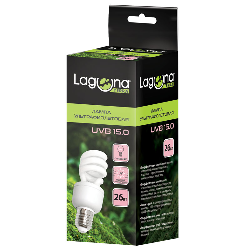 Лампа ультрафиолетовая UVB15.0, 26Вт, Laguna TERRA