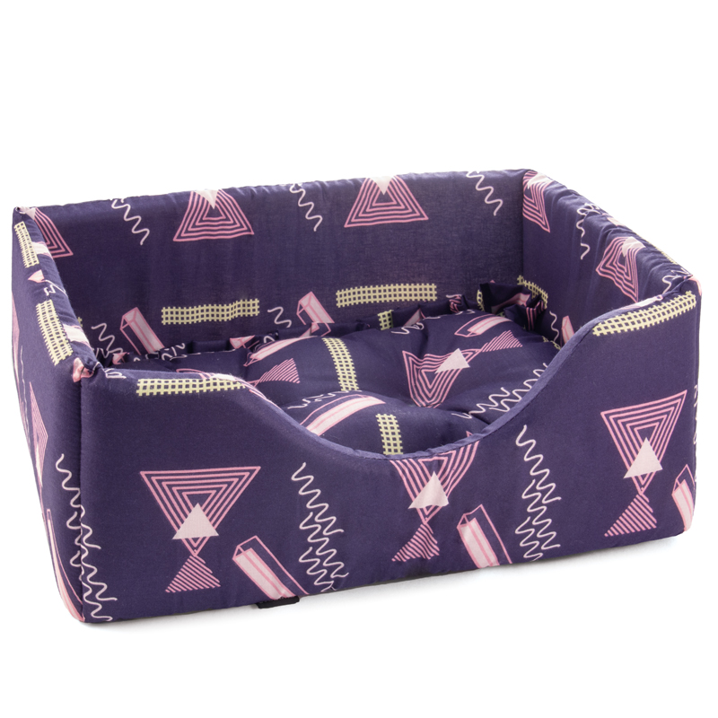 Мягкая лежанка прямоугольной формы на поролоновой основе. Изделие с высоким бортом имеет отделку из яркой и практичной бязи, съемную подушку в комплекте и круглую выемку при входе высотой 12 см. Лежанку можно стирать в стиральной машине и компактно складывать при транспортировке. Высота кругового борта составляет 20 см, а большой ассортимент расцветок позволяет выбрать изделие под любой интерьер. Размер изделия: 460*310*200мм.