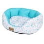 Очень комфортная лежанка c высоким бортом с покрытием под замшу. Наполнитель - синтепон. Мягкая съемная подушка с дизайнерским принтом. Подушка имеет съемный чехол на молнии, удобный в стирке. Дно выполнено из водонепроницаемой ткани. Цвет: синий с голубым. Размер: 750*650*150мм.