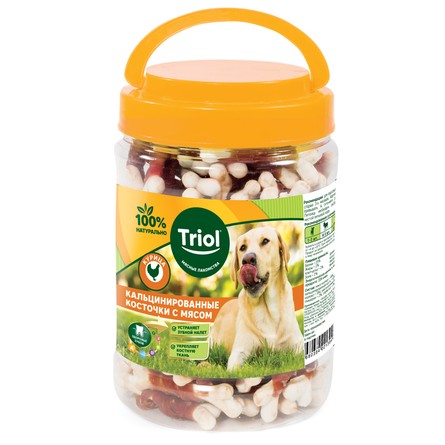 Кальцинированные косточки с курицей для собак, 450г (банка), Triol