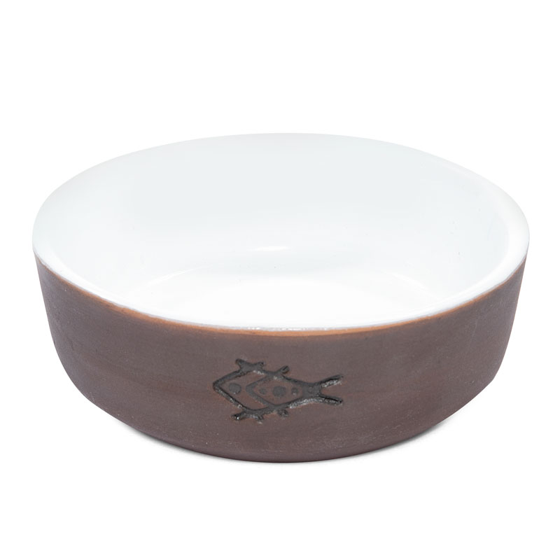 Керамическая миска "Емеля" выполнена в лучших традициях гончарного искусства и станет настоящим украшением "обеденной зоны" вашего питомца. Изделие имеет контрастную цветовую гамму - внешняя часть выполнена в коричневом цвете с нанесением оригинальной печати в виде рыбки, внутренняя часть миски - белоснежная, без нанесения. Стильная и функциональная миска для кошек и собак мелких пород идеально подойдет как для воды, так и для корма любой консистенции. Объем: 250мл. Размер: 133*133*45мм